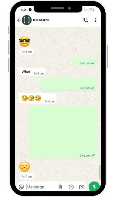 - Di WhatsApp: Kirim chat kosong dengan menempelkan kosong teks ke dalam pesan dan mengirimkannya ke teman.